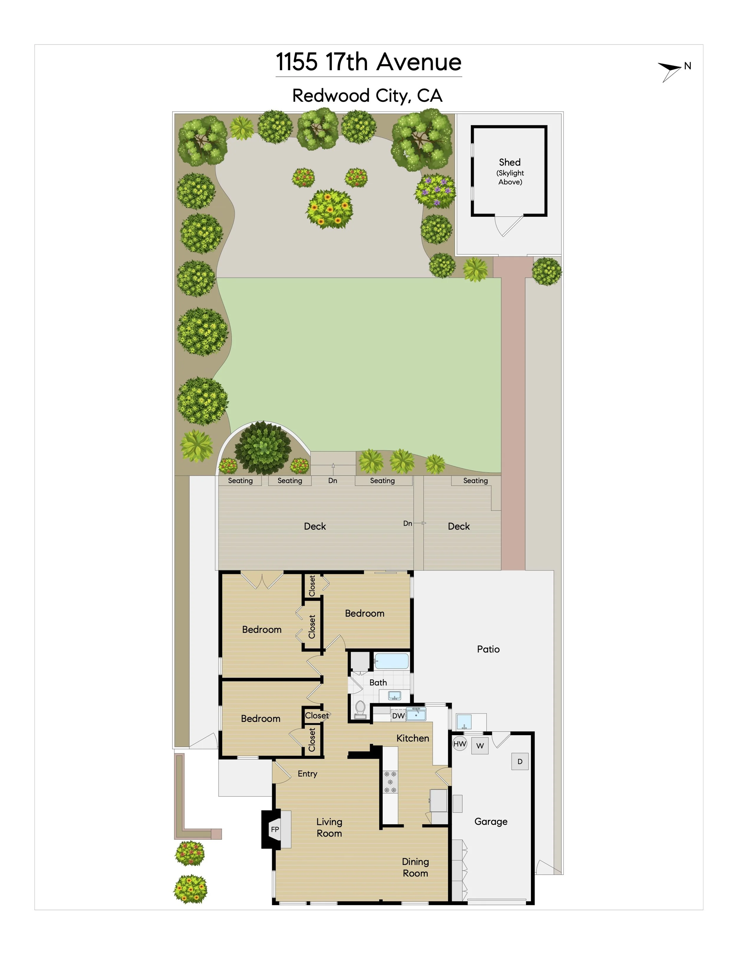Expansive 6,760 sq. ft. level lot with stunning landscaping and multiple spaces for relaxation and entertaining